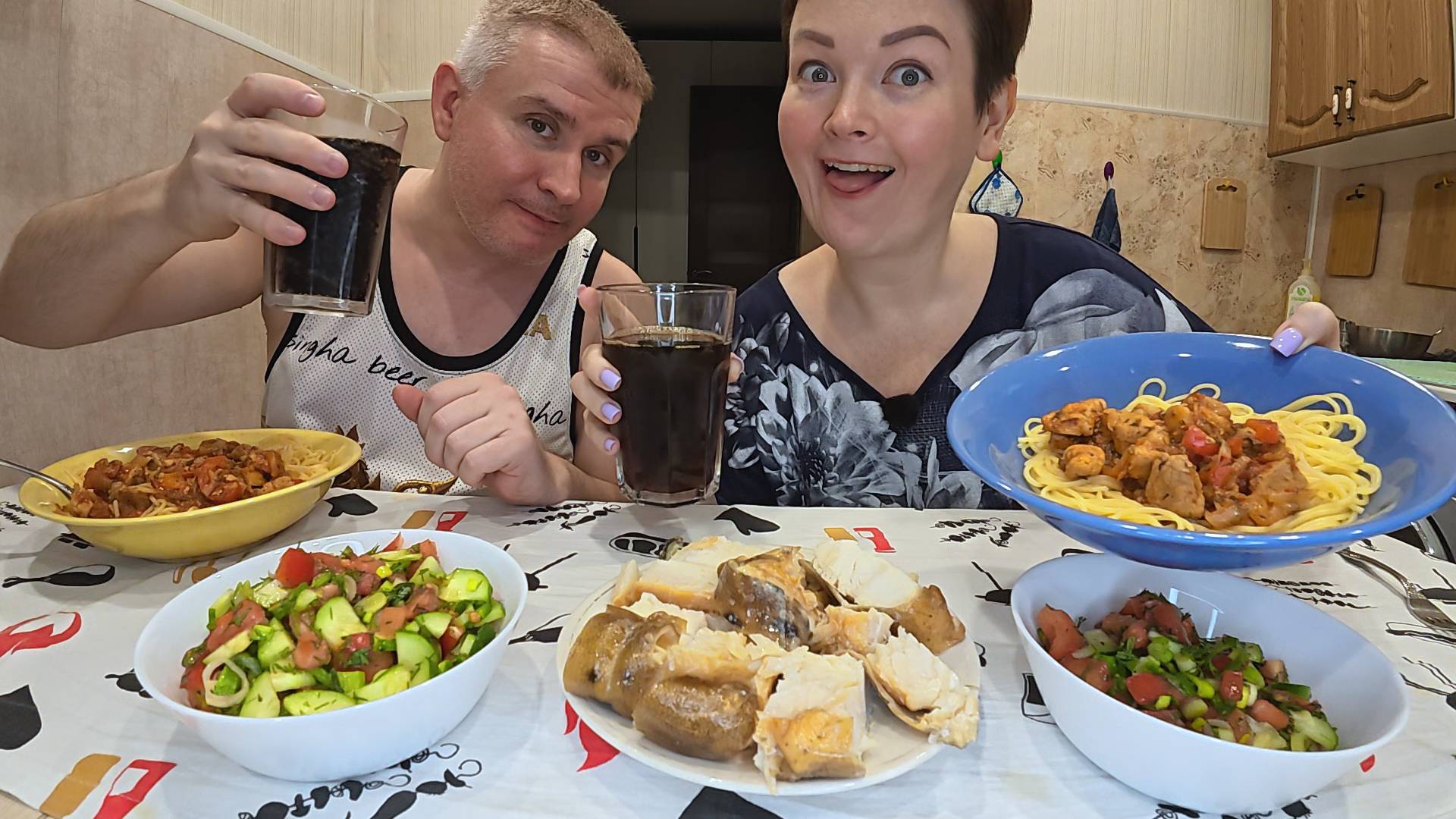 Мукбанг МУЖ ПРИГОТОВИЛ шикарный ужин! НАЛОПАЛИСЬ вкуснятины на НОЧЬ глядя! Семейный ужин в России