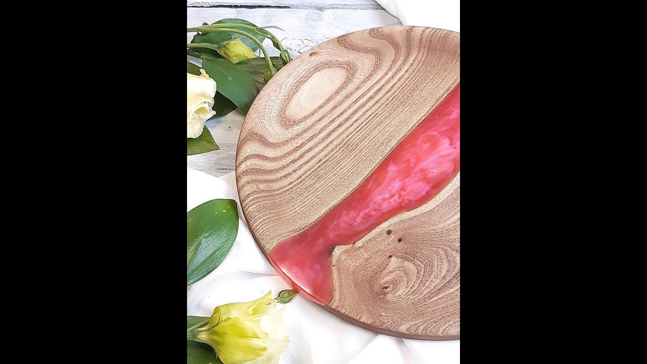 Тарелка выполнена из древесины карагача с заливкой из ювелирной смолы.