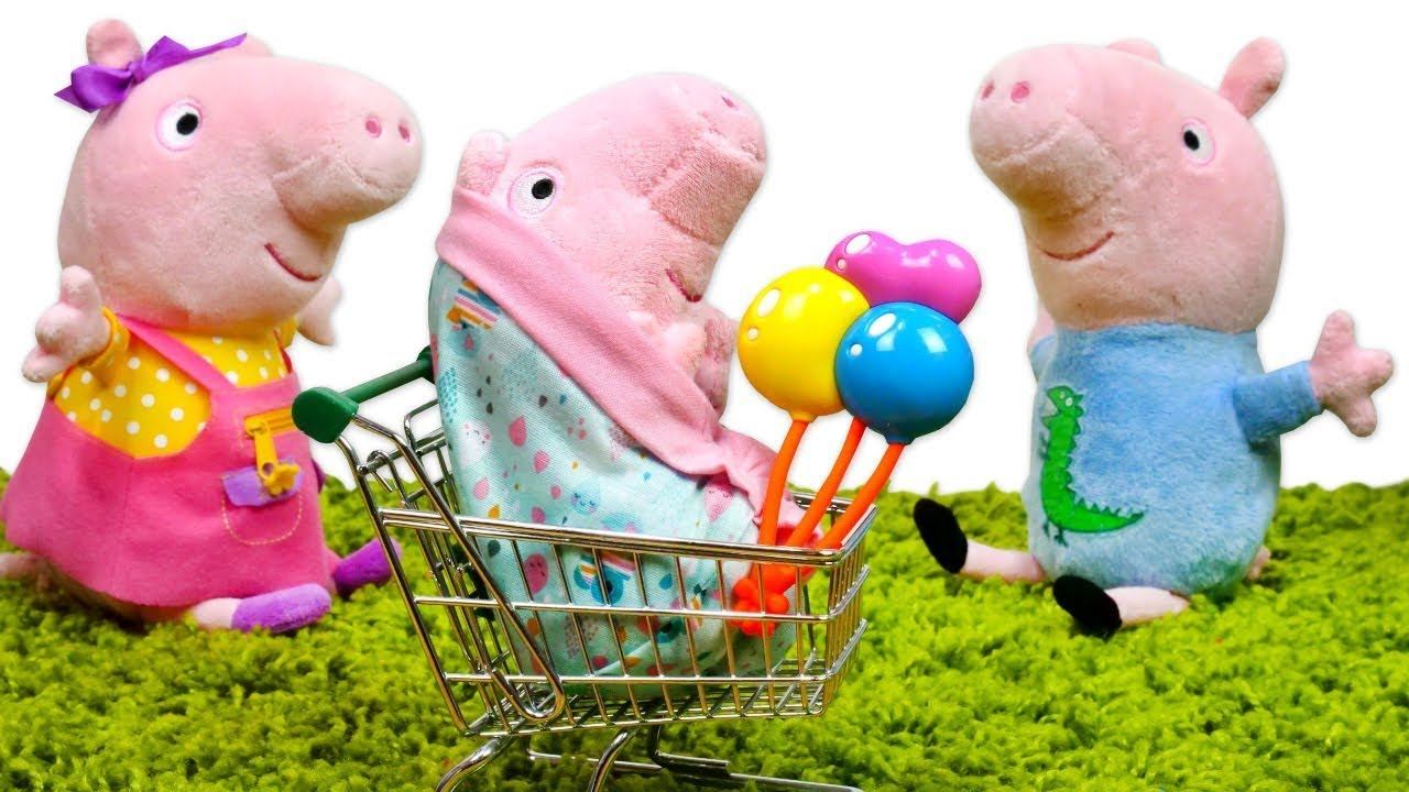 Мягкие игрушки Свинка Пеппа и семья Свинов. У Пеппы и Джорджа родился братик! Пеппа и Джордж рады!