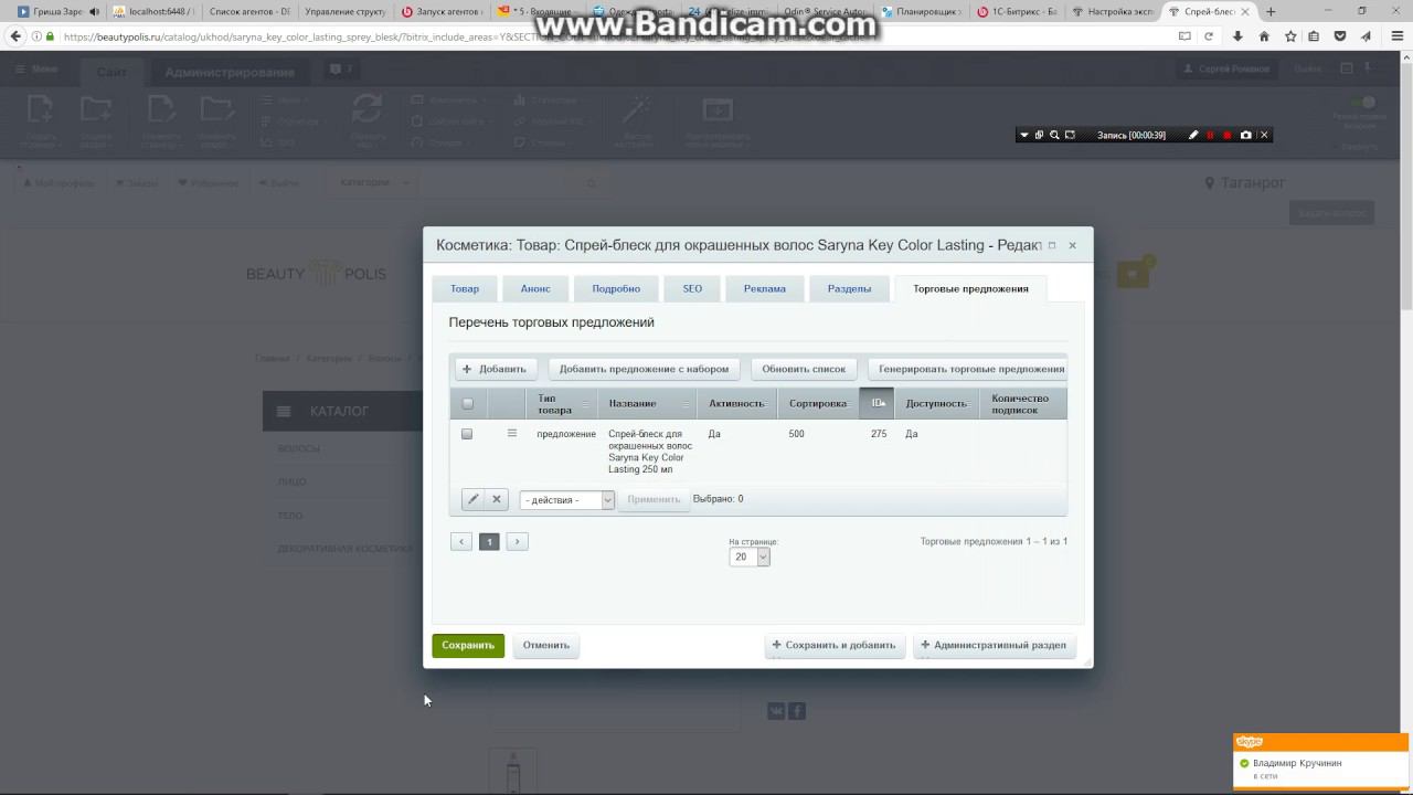 корректировка остатков в 1с Битрикс