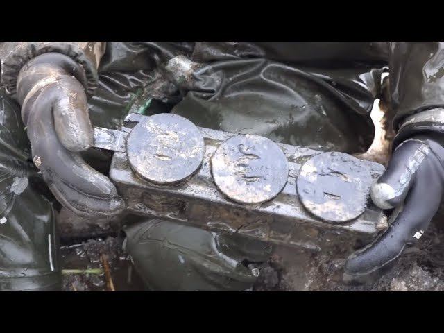 Немцы отступали, теряя вещи Поиск на дне замерзшей реки найденные на магнит и металлоискатель