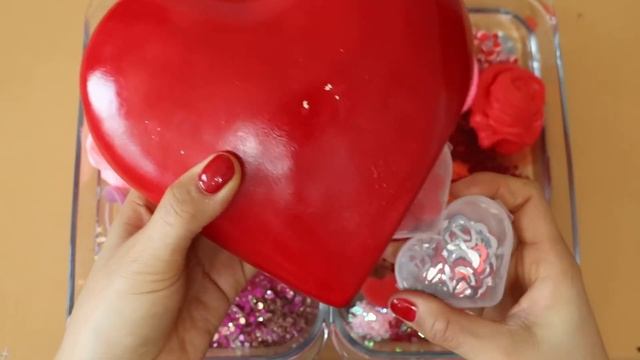 СЛАЙМ - Смешиваем «розовые и красные» тени, макияж, блёстки в слайм! ★ASMR★
