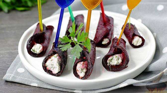 Бюджетная закуска на торжество. СВЕКОЛЬНЫЕ РУЛЕТИКИ С ТВОРОГОМ