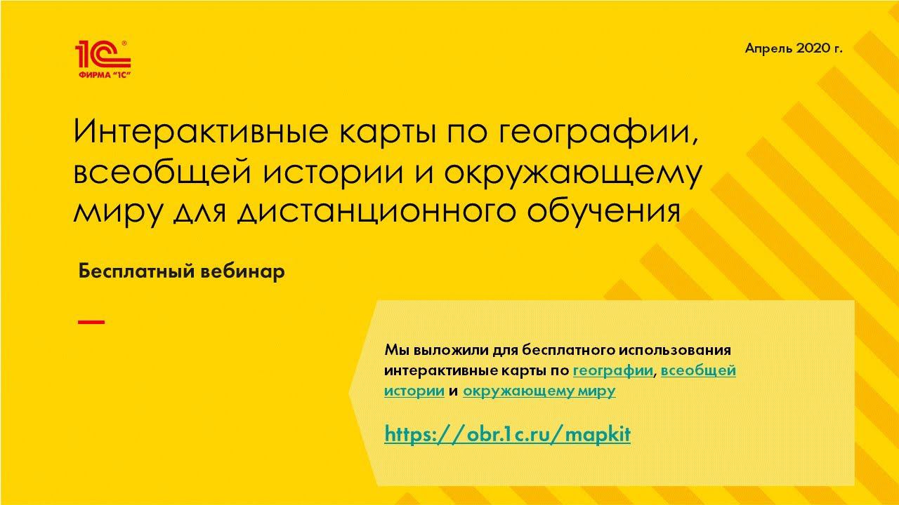 Вебинар по использованию интерактивных карт с автоматически проверяемыми заданиями и Конструктора карт в дистанционном обучении (28 апреля 2020) ------------------ ОГЛАВЛЕНИЕ и ссылки на соответствующие фрагменты записи: Лебедева Н. А., к.ф.-м.н. Руководитель группы разработки образовательных продуктов, Фирма «1С» 00:00 – ВВЕДЕНИЕ 00:41 – План вебинара 01:19 – Обзор бесплатных ресурсов на сайте https://obr.1c.ru/mapkit Виноградова М. В., к.с.н. Гимназия №9, г. Химки 03:23 – ИСПОЛЬЗОВАНИЕ ИНТЕРАКТИВНЫХ КАРТ НА УРОКАХ ИСТОРИИ 05:44 – Урок «Взятие Рима варварами» 13:21 – Урок «Мир на пороге Нового времени» 15:24 – Домашнее задание на основе интерактивных карт 18:09 – Урок подготовки к написанию мини-сочинения по обществознанию Белайчук О. А. Ведущий методист-проектировщик, Фирма «1С» 29:09 – КРАТКО О ВОЗМОЖНОСТЯХ КОНСТРУКТОРА ИНТЕРАКТИВНЫХ КАРТ 29:28 – Используйте разнообразные задания в зависимости от учебной цели 32:16 – Задания можно создавать в разных формах – какая форма лучше? 38:49 – Как быстро создать свое задание или отредактировать имеющееся 45:21 – Предоставляйте ученикам возможность создавать свои карты 46:53 – Дополнительный ресурсы для преподавателей – Конструктор карт и «Решебник