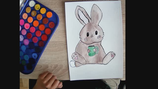 Рисую кролика который пьёт чай