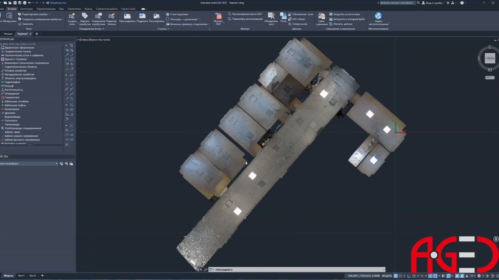 Как загрузить облако точек в Autocad, сделать сечение и отрисовать техплан