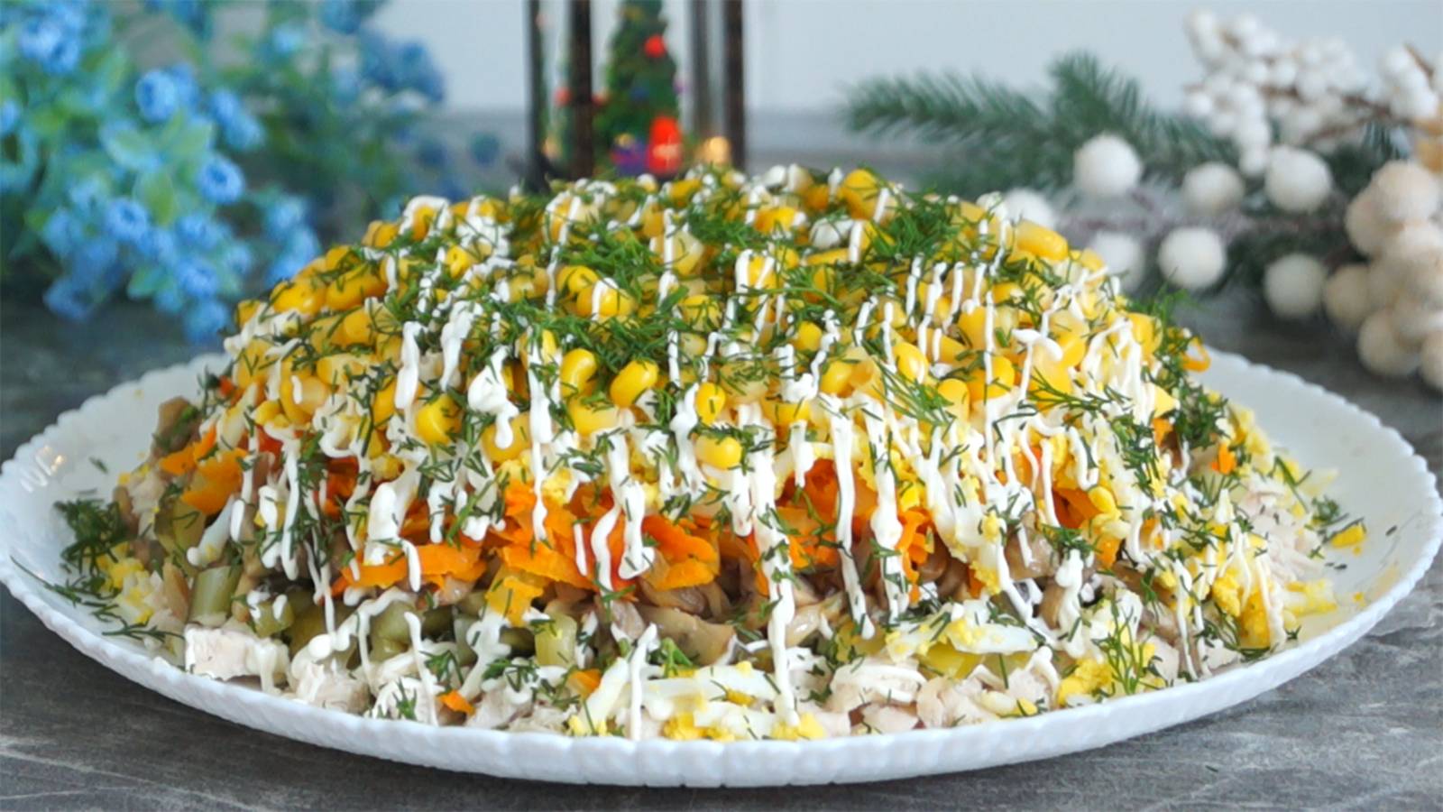 Необыкновенный салат "Курочка под шубой" на праздничный стол. Рекомендую вам его попробовать, он очень вкусный. Рецепт куриное филе отварное 1 шт огурцы маринованные 3 шт яйца 3 шт. грибы 300 г морковь 1 шт лук 1 шт кукуруза 100 г зелень укропа майонез соль, перец по вкусу Приятного аппетита!