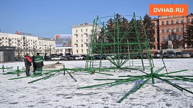 На площади Ленина и в «Динамо» начали устанавливать каркас новогодних елок