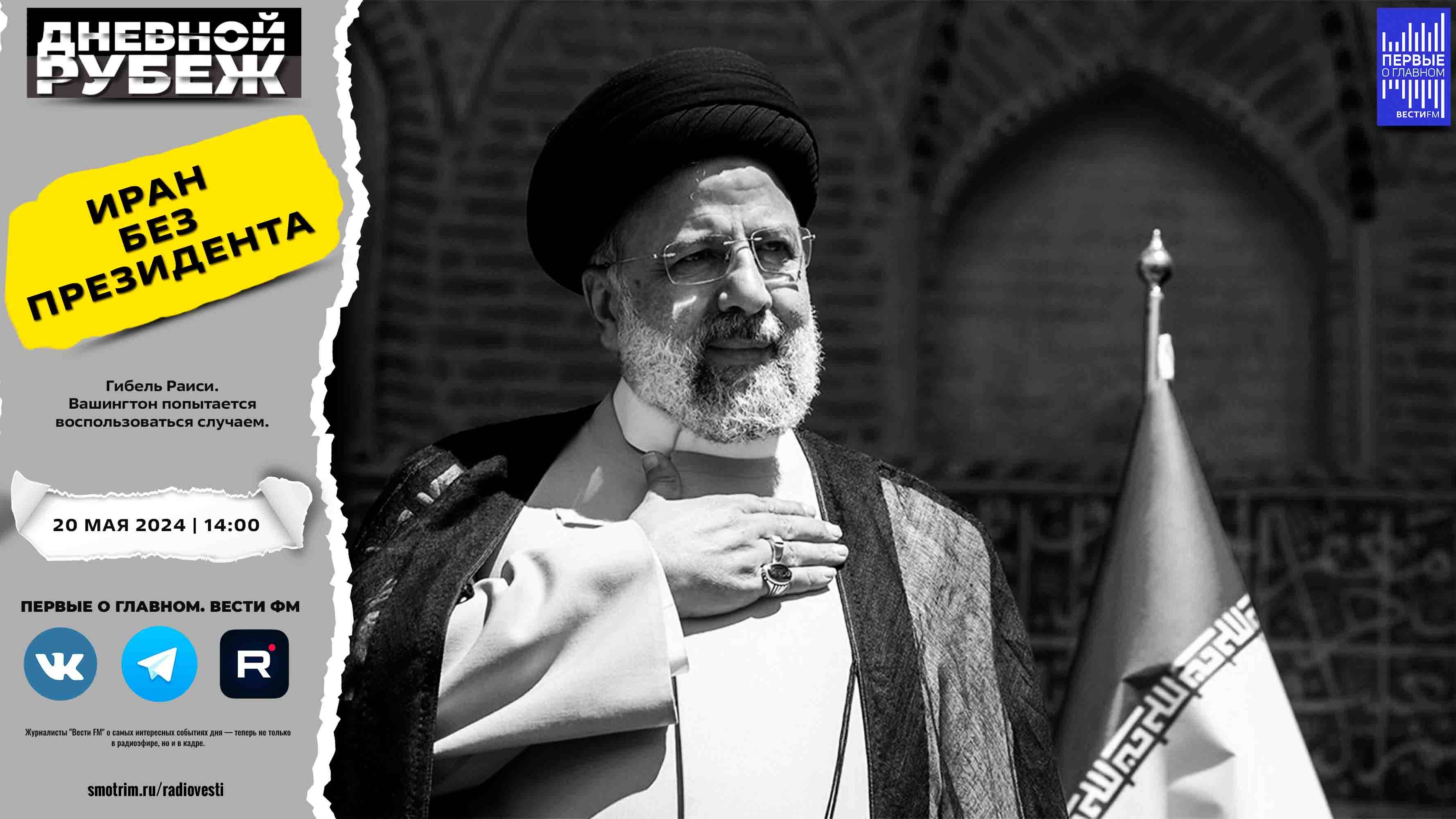 #дневнойрубеж #первыеоглавном #сво #донбасс #спецоперация #украина #иран #раиси #мехди #восточныйазербайджан #крушение #пленные #всу #зеленский Гибель Раиси. Вашингтон попытается воспользоваться случаем. 🔔Подписывайтесь на Telegram канал - Первые о главном: https://t.me/vestifmfirst 🔔Подписывайтесь на Rutube канал - Первые о главном: https://rutube.ru/channel/24115140/ 🔔Подписывайтесь на VK канал - Первые о главном: https://vk.com/first.vestifm 🔔Подписывайтесь на ДЗЕН канал - Первые о главном: https://zen.yandex.ru/id/5fc4960a799d1b24b5be5189 🔔Подписывайтесь на Telegram канал - ВестиFM+: https://t.me/s/vestifmplus СМОТРИТЕ НАС НА ПЛОЩАДКЕ СМОТРИМ: https://smotrim.ru/channel/365