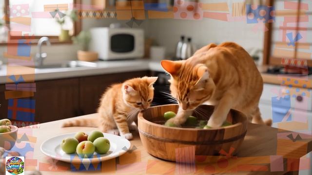 Рыжик и мама-кошка на ферме в дождливый день