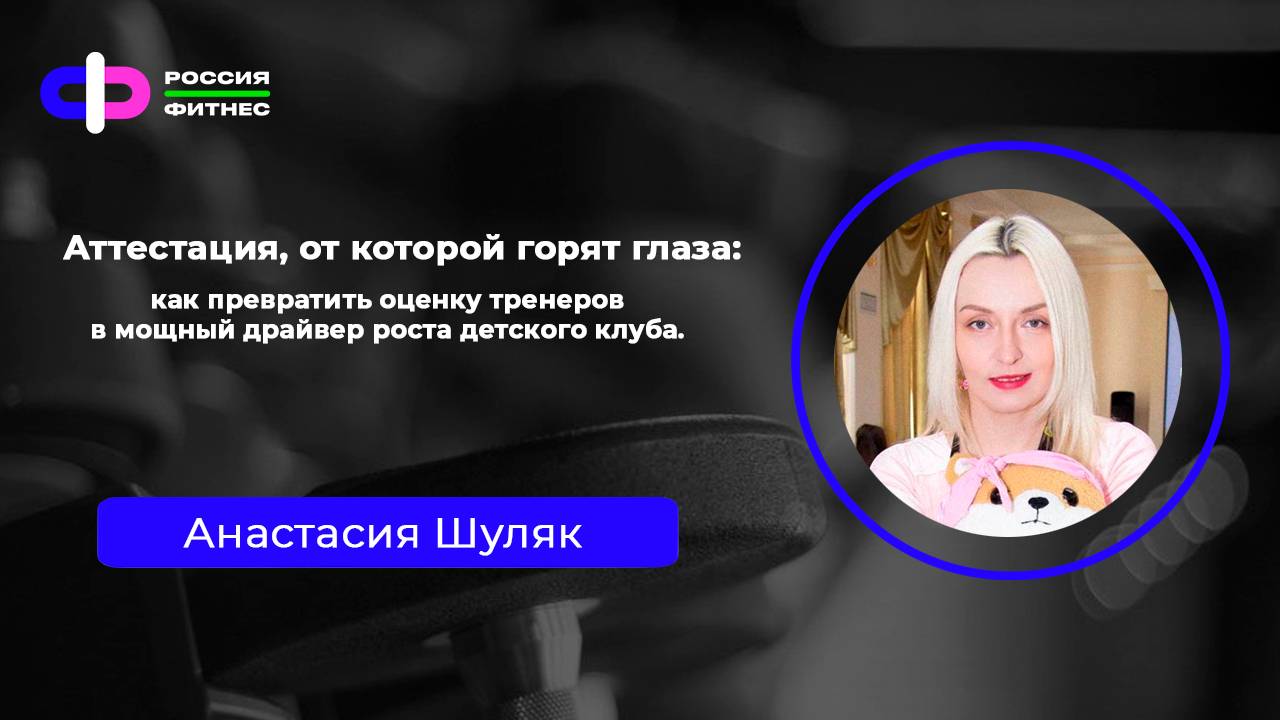 Как сделать аттестацию тренеров мотивирующей? Расскажем в рамках онлайна! Тема: Аттестация, от которой горят глаза: как превратить оценку тренеров в мощный драйвер роста детского клуба. Спикер: Анастасия Шуляк, независимый эксперт детского фитнеса, автор 3 книг, лектор и презентер международных и российских конвенций, семинаров, основатель конкурса «Лучший инструктор детского фитнеса». Победитель премии Russia Fitness Awards 2022 «Лучший руководитель Детского Клуба» и «Лучший бизнес-консультант». Как оценить детских тренеров, если вы не педагог и вам кажется, что вы ничего не понимаете в детском клубе? Аттестация — это не бюрократия, а ваш секретный инструмент для: • +40% к удержанию клиентов — когда тренеры работают осознанно, дети не уходят к конкурентам • увеличения среднего чека — научим, как через оценку мотивировать продавать персональные тренировки • снижения текучки кадров — ваши лучшие тренеры останутся, а не уйдут в «более прогрессивный» клуб • спокойствия руководителя — больше никакого хаоса, только система, которая работает без вашего ежедневного контроля