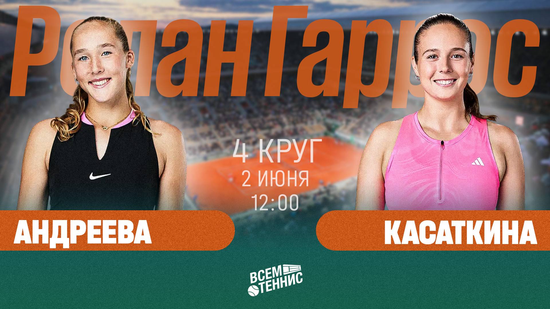 2.06.2025 | 12:00 | Андреева – Касаткина | Ролан Гаррос | Прямая трансляция