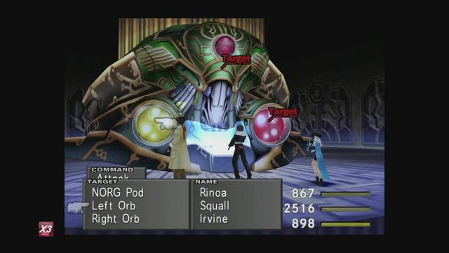 TriangleGame Прохождение PS4 Final Fantasy viii Remastered # 12 Бой с NORG В начале битвы Хозяин укрывается от атак группы в своей капсуле. Сама по себе она абсолютно безвредна и после нескольких хороших ударов треснет, вынудив НОРГа лично вступить в схватку.