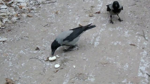 Умные вороны быстро поняли, что самое вкусное в варёных яйцах