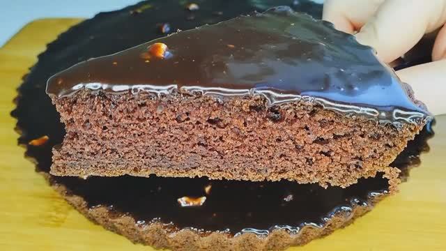 Шоколадный пирог с шоколадной глазурью на кефире в духовке🍫