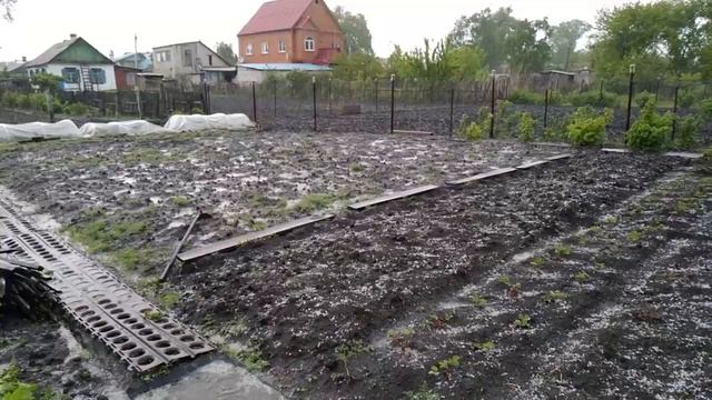 Приморье, Спасск-Дальний, 26 мая 2020г. Внезапно налетевший град треплет огород и сад.