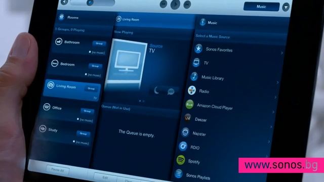 Playbar -- интегриран самостоятелен плейър,Picture10 които възпроизвежда аудио сигнала от вашият телевизор, като има нужда от цифров и захранващ кабел и разполага с 9 говорителя и 9 цифрови усилвателя клас D - по 1 за всеки от деветте говорителя. С Playbar можете да направите и домашно кино без кабели с модела Playbar, който има вграден процесор, можете да направите домашно кино във виртуална конфигурация 3.0 , 3.1 или 5.1. Oт менюто на контролера, можете да го свържете към 2 броя Play:3 за съраунд и SUB като по този начин ще увеличите капацитета, мощността и производителността на системата в конфигурация домашно кино! Sonos Playbar поддържа самостоятелно виртуален съраунд в конфигурация 3.0. С него можете да стриймвате аудиото от телевизора безжично към всички останали плейъри Sonos вкъщи. http://bit.ly/WcWhee