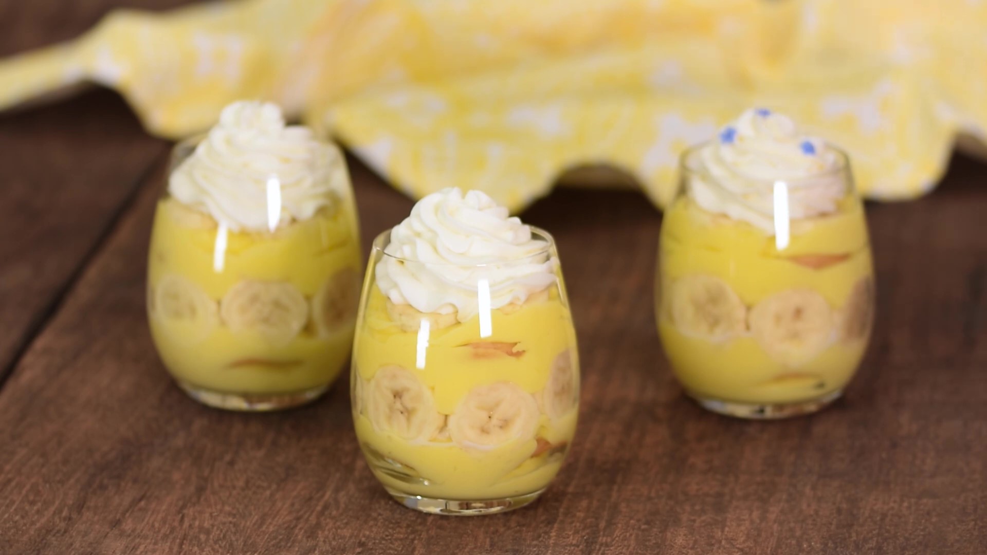 Ингредиенты: «На 6 порций» Для печенья: Размягчённое сливочное масло — 110 г. Сахар — 120 г. Яйцо «категории С0» — 1 шт. Ванильный экстракт — 1 ч.л. Мука — 190 г. Разрыхлитель — 2 г. Соль — щепотка Молоко — 1 ст.л. Для крема: Охлаждённые сливки 33-35% — 270 мл. Сахарная пудра — 50 г. Ванильный экстракт — 1 ч.л. Заварной крем — 600 г. 3-4 банана • Заварной крем — «Видео как делать заварной крем, есть на канале» Все ингредиенты для теста должны быть комнатной температуры. 1. Разогреть духовку до 180 °С. 2. Приготовить печенье. В миске смешать муку, разрыхлитель и соль. Отложить в сторону. 3. Размягчённое сливочное масло взбить миксером вместе с сахаром, в течение 2 минут. Затем добавить яйцо, ванильный экстракт и молоко, хорошо всё перемешать до однородной массы. Добавить муку и замесить тесто. 4. Из теста скатать шарики весом около 10 г, и выложить на противень застеленный пергаментной бумагой. 5. Выпекать в разогретой духовке 10-12 минут, до золотистого цвета. Готовое печенье вынуть из духовки и остудить на решётке. 6. Приготовить заварной крем по указанному рецепту и остудить его до комнатной температуры. 7. Охлаждённые сливки взбить вместе с сахарной пудрой и ванильным экстрактом до крепких пиков «хранить взбитые сливки нужно в холодильнике». 8. Бананы очистить от кожуры и нарезать кружочками средней толщины. Полить бананы 1 ст.л. лимонного сока. 9. Собрать пудинг. Распределить небольшое количество заварного крема по дну стакана объёмом 200-250 мл. Сверху выложить слой из печенья, затем распределить ещё немного заварного крема и выложить ломтики бананов. Поверх бананов выдавить небольшое количество взбитых сливок и повторить всё тоже ещё раз. Верх пудинга украсить взбитыми сливками и убрать в холодильник на 2 часа, чтобы печенье пропиталось и стало мягким.