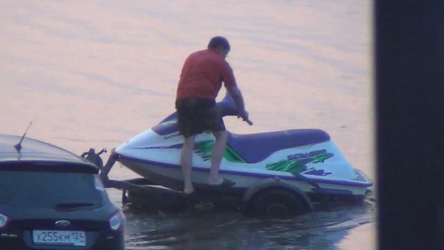 Водный мотоцикл КСК берег Енисея набережная лесосибирск Видео высокой четкости.