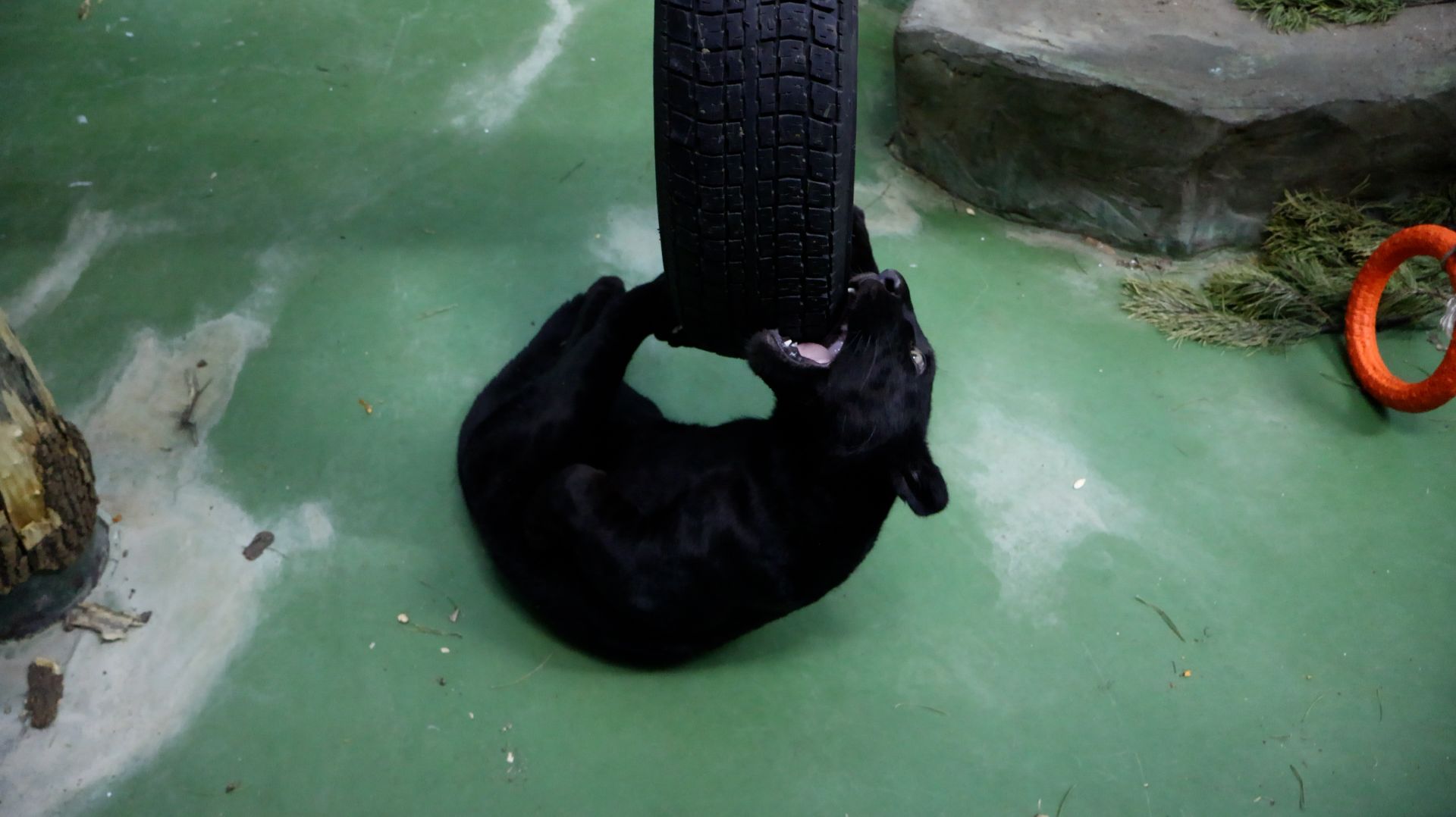 Ягуар Габриэль играет с шиной