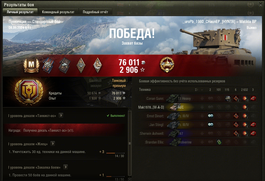 ПРОВИНЦИЯ МАСТЕР на Matilda Black Prince ОПЫТ: 1384 СУММАРНЫЙ УРОН: 2733 медаль КАЛИБР