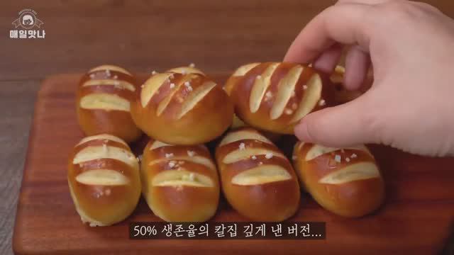 Я сделал его маленького размера, который легко есть, а не кренделя оригинальной формы. Лично я не люблю крендель, потому что он соленый. Если вы делаете это дома, вы можете отрегулировать уровень соли, чтобы он был таким вкусным. Особенно лучше всего получается крендель со сливочным сыром. Легко есть за чаем, так что делайте побольше :) *** Взвешивание - весы (г), ложка риса (ст. Л.), Вес чайная (ч. Л.). [30 штук] ✤ Тесто -300 г хлебной муки -6 г (1,5 ч. Л.) Сахара -4 г (1 чайная ложка) соли -5 г (1,2 чайной ложки) дрожжей -200 мл холодного молока -30 г несоленого сливочного масла комнатной температуры ✤ сырный соус -150 г сливочного сыра -1 столовая ложка (10 г) сахара ✤ Пищевая сода -800 мл воды -Пищевая сода 50 г (съедобная) ✤ Топпинг -Морская соль (можно не добавлять) -15г Топленое несоленое масло (наносится на дно теста, наносится после выпечки) ✤ СОВЕТ -Для мягкой текстуры используйте как можно больше хлебной муки. -Если не промыть пищевую соду, она не станет темно-коричневой. -Мы воздерживаемся от брожения, но добавляем дрожжи для того, чтобы внутренняя часть была мягкой и жевательной. -Вы можете использовать аэрогриль. Используйте температуру примерно на 10 градусов ниже. -Вкуснятина без морской соли. Если вам не нравится жевать соль, не доливайте ее. -Держите оставшийся хлеб замороженным. -Перед едой запекать в разогретой до 180 градусов духовке 5 минут.