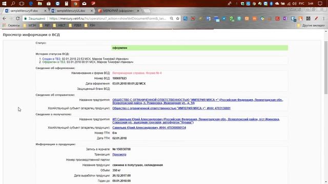 Оформление заявок на регистрацию в системе Меркурий ХС, гашение и оформление возвратных ВСД