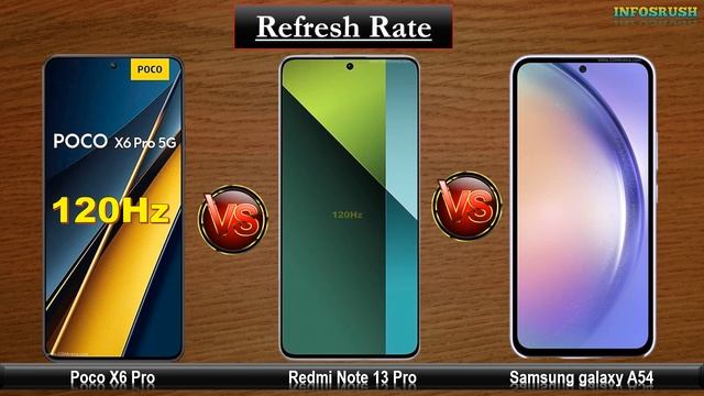 Poco X6 Pro vs Redmi Note 13 Pro vs Samsung Galaxy A54: **Display** * **Poco X6 Pro:** 6.67-inch AMOLED, 120Hz refresh rate, Dolby Vision, HDR10+, Gorilla Glass Victus [Image of Poco X6 Pro Display] * **Redmi Note 13 Pro:** 6.62-inch AMOLED, 120Hz refresh rate, HDR10, Gorilla Glass 5 [Image of Redmi Note 13 Pro Display] * **Samsung Galaxy A54:** 6.4-inch Super AMOLED, 120Hz refresh rate, HDR10+, Gorilla Glass 5 [Image of Samsung Galaxy A54 Display] The Poco X6 Pro has the largest and most vibrant display with Dolby Vision and HDR10+, but the Redmi Note 13 Pro is close behind with a slightly smaller AMOLED display and HDR10 support. The Samsung Galaxy A54 has a slightly smaller Super AMOLED display with HDR10+ support. **Performance** * **Poco X6 Pro:** Qualcomm Snapdragon 7 Gen 2, 8GB or 12GB RAM * **Redmi Note 13 Pro:** MediaTek Dimensity 8100, 6GB, 8GB, or 12GB RAM * **Samsung Galaxy A54:** Exynos 1380, 4GB, 6GB, or 8GB RAM The Poco X6 Pro has the most powerful processor, the Snapdragon 7 Gen 2, which is better for gaming and heavy multitasking. The Redmi Note 13 Pro has a slightly less powerful processor, the MediaTek Dimensity 8100, but it's still a good choice for most users. The Samsung Galaxy A54 has the least powerful processor, the Exynos 1380, but it's still capable of handling everyday tasks. **Camera** * **Poco X6 Pro:** 108MP main, 8MP ultrawide, 2MP macro * **Redmi Note 13 Pro:** 108MP main, 8MP ultrawide, 2MP macro * **Samsung Galaxy A54:** 50MP main, 12MP ultrawide, 5MP macro, 2MP depth All three phones have a 108MP main camera, but the Poco X6 Pro and Redmi Note 13 Pro have a better ultrawide camera. The Samsung Galaxy A54 has a depth sensor for better portrait photos. **Battery** * **Poco X6 Pro:** 5000mAh * **Redmi Note 13 Pro:** 5000mAh * **Samsung Galaxy A54:** 5000mAh All three phones have a 5000mAh battery, which should provide good battery life. **Price** * **Poco X6 Pro:** $350 to $400 * **Redmi Note 13 Pro:** $300 to $350 * **Samsung Galaxy A54:** $300 to $350 The Poco X6 Pro is the most expensive phone, but it also has the best specs. The Redmi Note 13 Pro is a good value for the price, and the Samsung Galaxy A54 is a good option for those who want a good camera and a long battery life. **Overall** The Poco X6 Pro is the best phone overall, with the best display, performance, and camera. However, it is also the most expensive phone. The Redmi Note 13 Pro is a good value for the price, and the Samsung Galaxy A54 is a good option for those who want a good camera and a long battery life. Ultimately, the best phone for you will depend on your needs and budget. Key Moments: 00:00 Intro 00:07 Camera 01:02 Memory 01:23 Platform 02:01 Battery 02:22 Display 03:35 COMMS 04:27 Body #infosrush #xiaomi #poco #redmi #samsung #galaxy #pocox65g #pocox6 #pocox6pro5g #pocox6pro #redminote135g #redminote13pro #redminote13series #samsunga545g #samsunga54 #samsunggalaxy #galaxy #galaxya545g #galaxya54 #samsunggalaxya54 #samsunggalaxya545g ▬▬▬▬▬▬▬▬▬▬▬▬▬▬▬▬▬▬▬▬▬▬▬▬▬▬▬▬▬▬▬▬▬▬▬ ? DISCLAIMER: Disclaimer Video is for educational purpose only Copyright Disclaimer Under Section 107 of the Copyright Act 1976, allowance is made for "fair use" for purposes such as criticism, comment, news reporting, teaching, scholarship, and research Fair use is a use permitted by copyright statute that might otherwise be infringing Non-profit, educational or personal use tips the balance in favor of fair use Some photos in the video are downloaded from Google Image. Picture used in this video is protected by the Fair Use Law, section 107 used for commentary, criticism, news reporting or education for transformative use. Thank You ▬▬▬▬▬▬▬▬▬▬▬▬▬▬▬▬▬▬▬▬▬▬▬▬▬▬▬▬▬▬▬▬▬▬▬ Track: Lost Sky - Dreams [NCS Release] Music provided by NoCopyrightSounds. Watch: https://youtu.be/SHFTHDncw0g Free Download / Stream: http://ncs.io/DreamsYO ☛ THANKS FOR WATCHING... #infosrush"