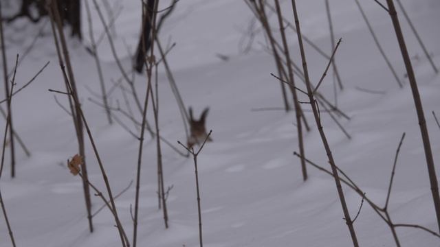 Белка купается в снегу
