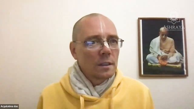 Тема: "Особый месяц Картика". ШБ 10.38 Прибытие Акруры во Вриндаван. Лектор: Е.М. Ачьютатма дас Для преданного Кришны каждое мгновение - это месяц Картика. Мы выделяем особый месяц, но Шрила Прабхупада говорит, что это такой некий стимул для людей, которые начинают духовную практику. Это любимый месяц Шримати Радхарани. Хорошо этот месяц проводить во Вриндаване. Можно физически пребывать во Вриндаване, а можно в своем уме, своем сердце. Можно быть в своих городах и быть во Вриндаване; а можно быть во Вриндаване и быть в своих городах. В этот месяц вы можете подумать, как улучшить свою практику. Взять обеты. Можно что-то улучшать, но также можно и от чего-то отказаться. Мы поем Дамодараштаку в этот месяц каждый день и предлагаем фитилек. Это минимальная аскеза. Хорошо бы знать суть этой молитвы.. Мы подготовились и теперь отправляемся во Вриндаван вместе с Акрурой. В Бхагаватам описывается, что когда Камса сел на престол, почти все порядочные люди ушли из города, они не хотели оставаться под его правлением. Акрура - один из тех преданных, которые остались служить Камсе. Камса ему сильно доверял. Почему он остался? Он хотел встретить Кришну. Он знал, что Кришна убьет Камсу. И он все время ждал, когда явится восьмой сын Деваки, чтобы увидеть Его. Мы тоже можем молиться в месяц Картика, чтобы желание увидеть Кришну усиливалось в нас. 12 лет Акрура жил под правлением Камсы. Также и для того, чтобы служить Деваки и Васудеве, которые тоже остались в Матхуре. Для нас великая удача соприкоснуться с великими вайшнавами и что-то для них сделать. Это билет во Вриндаван. Нарада Муни хочет ускорить приезд Кришны во Вриндаван и дает совет Камсе выманить Кришну в Матхуру. Тогда Камса посылает Акруру за Кришной и Баларамой во Вриндаван. Часто благодаря трудностям мы приближаемся к Кришне. И Акрура благодарен Камсе, что все так сложилось. Важно не просто увидеть Господа, но и доставить Ему удовольствие. Иначе мы как Камса. Для чего хотим попасть во Вриндаван? Мы должны попасть во Вриндаван, следуя по стопам Акруры. Однажды к Шриле Прабхупаде пришли люди и сказали: “Покажите мне Бога?” На что Шрила Прабхупада ответил, а есть ли у вас глаза увидеть Его? Нужна квалификация и нужна милость Верховного Господа. Для этого мы можем служить вайшнавам и духовному учителю, Шримад-Бхагаватам и Шриле Прабхупаде. Кришна заботится о коровах, Он сам Своим примером показывает, как служить коровам. Если корова защищена, то в ее молоке много любви. Даже если у нас нет ахимса молока, мы не отказываемся совсем от молока. Важнее участвовать в миссии Господа Чайтаньи. Важно умонастроение: я принесу ахимса молоко Господу, а не просто сам буду его пить. Тогда это бхакти. Для начала хорошо приезжать физически во Вриндаван. А потом уже через служение преданным можем медитировать в уме на Вриндаван. Господь Чайтанья - выход к Радхе-Кришне. Как попасть к Господу Чайтанье? - По милости шести Госвами, по милости Рупы Госвами. Как попасть к Рупе Госвами? - По милости Шрилы Прабхупады. Кто нам дает Шрилу Прабхупаду? - Духовный учитель. Если вы чувствуете близость с духовным учителем, то вы всегда во Вриндаване. Вопросы к лектору: 1. Скажите, пожалуйста, о защите коров и влиянии ахимса молочных продуктов? 2. Как понять настроение Вриндавана? Как можно попасть во Вриндаван, служа вайшнавам и духовному учителю, н