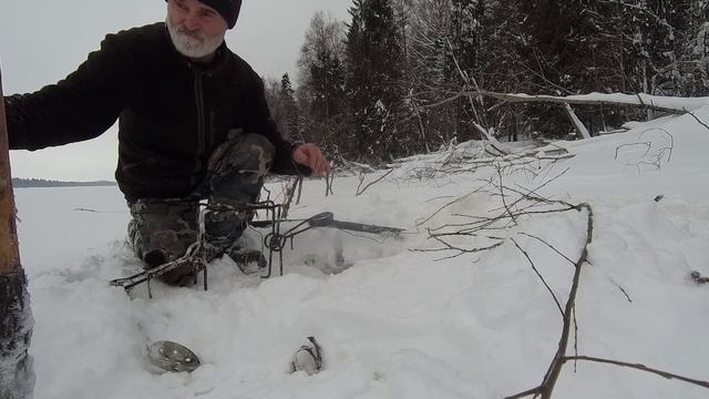 Охота на бобров. Удачная проверка капканов зимой на водохранилище.