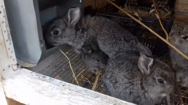 Кроликам исполнился 1 месяц. Делюсь с вами видео как они подросли. Первый окрол. Кролики уже не новорожденные, кушают самостоятельно.