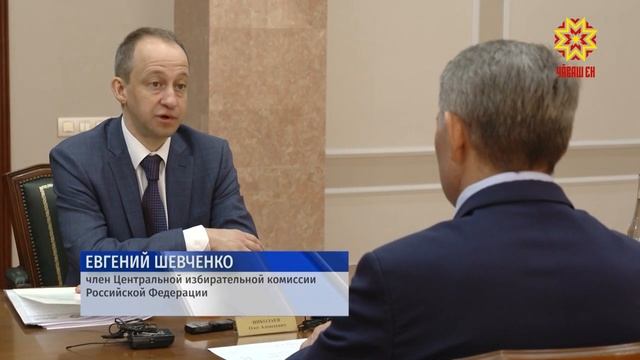 Сегодня Глава Чувашии Олег Николаев встретился с членом Центральной избирательной комиссии Российской Федерации Евгением Шевченко. Стороны обсудили предстоящие в сентябре выборы в муниципальные органы власти, преобразование районов в округа, преимущество такой системы работы. Евгений Шевченко отметил, сбор подписей за кандидатов через Единый портал Госуслуг, проведенный в Чувашии год назад, показал свою эффективность. Опыт республики теперь перенимают и другие регионы. Обсудили на встрече и работу Центра общественного наблюдения в Чебоксарах, который также показал свою результативность на предыдущих выборах в республике. ЕВГЕНИЙ ШЕВЧЕНКО: «У вас центр очень хорошо был организован на базе Чувашского государственного театра оперы и балета. Очень красивое помещение, очень функциональное. Люди могли в течение 72-х часов, все желающие могли круглосуточно смотреть, наблюдать. Была функция перемотки назад, разобрать ситуацию и нарушений было немного». – Вся работа была проведена на должном уровне с максимальной открытостью, с обеспечением всех прав и свобод и необходимых регламентов, которые предусмотрены и законом, и обычаями, как говорится, делового оборота при проведении массовых кампаний