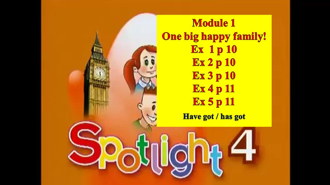English Spotlight 4 Module 1 p 10-11 Английский Спотлайт 4 стр 10-11 00:18 - words - слова 00:50 - Ex 1 p 10 Упр 1 стр 10 01:22 - Ex 2 p 10 Упр 2 стр 10 03:33 - Ex 3 p 10 Упр 3 стр 10 05:23 - Ex 4 p 11 Упр 4 стр 11 06:37 - Ex 5 p 11 Упр 5 стр 11 07:12 - видео диалог