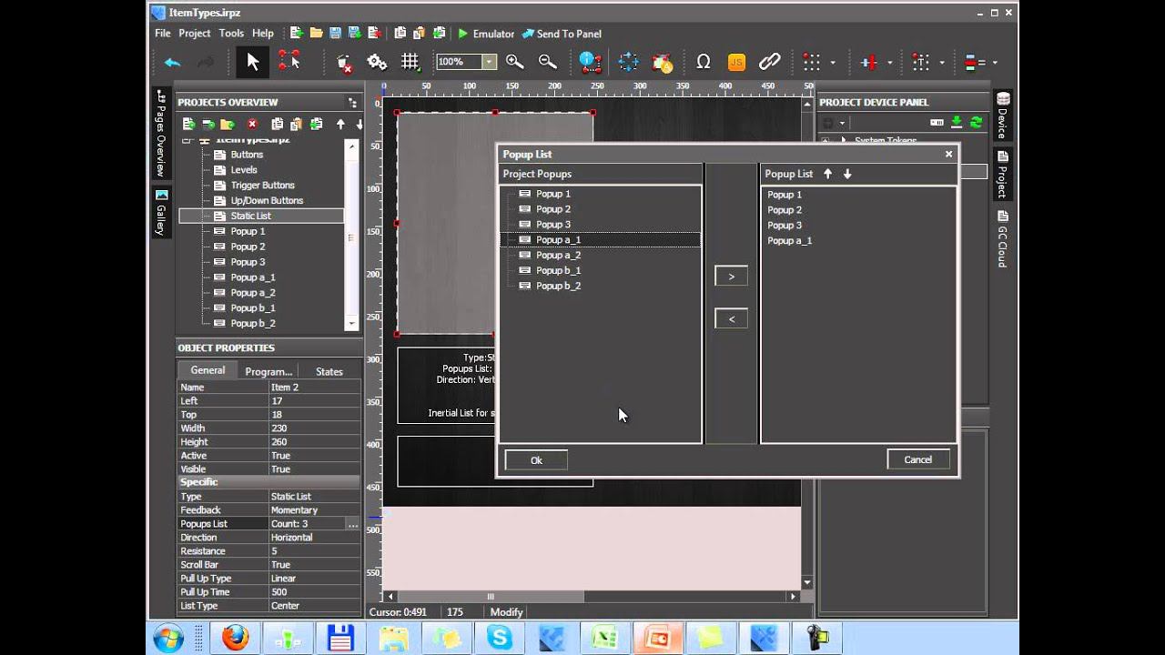 Graphic item of iRidium GUI Editor: Static List