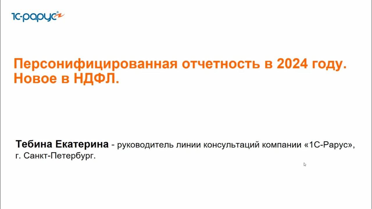 Запись вебинар от 22 марта 2024 года на тему "Персонифицированная отчетность в 2024 году. Новое в НДФЛ". Программа вебинара: ФОРМА ЕФС-1 - ЕФС-1 новое в 2024 году. - Учет индивидуальных номеров рабочих мест сотрудников. - Формирование сведений с типом «Назначение выплат по ОСС». - Корректировка и отмена ранее переданных сведений о трудовой (иной) деятельности в СФР. НДФЛ - Налоговые уведомления по НДФЛ. Новые сроки по уплате НДФЛ. - Корректировка ошибочного уведомления. - Материальная выгода с 2024 года. - НДФЛ в бухгалтерском учете.