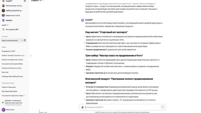 И это не кликбейт. С помощью ИИ Никита с Мару: - сделали распаковку бизнеса - провели анализ рынка, ЦА, конкурентов - построили стратегию продаж - создали продуктовую линейку Смотрите пошаговую инструкцию по работе с ИИ в видео ⬆️ Если вы хотите создать себе Ai контент пишите моим ai помощникам в телеграм: https://t.me/neo_titovv Мой канал про Ai инструменты, которые помогают создавать вовлекающий контент для упаковки и продвижения блага или бизнеса. https://t.me/neo_ikigai -------------------------- Меня зовут Никита Титов, я амбассадор внедрения Ai в бизнес. Создаю полноценные Ai команды для бизнеса. Увеличиваю прибыль и сокращаю временные и финансовые расходы для экспертов и предпринимателей. Веду более 20 медиа ресурсов и социальных сетей. Мой Инстаграм: https://www.instagram.com/neo_titov Переходите в мой блог—дневник в Threads https://www.threads.net/@neo.titov #нейросети #экспертам #искуственныйинтеллект #ии
