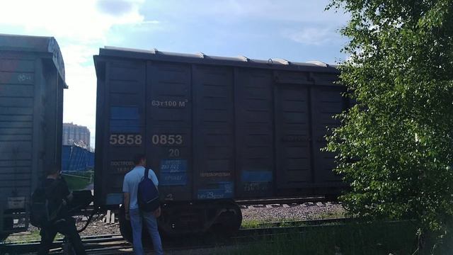 И снова я увидел, как маневровый тепловоз толкал грузове вагоны. Я очень люблю поезда и не мог не снять эту маневровую операцию. На одном из них было написано "Балтика". Уже разлитое по банкам и бутылкам пиво перевозят в таких крытых вагонах с пивозавода. Он находится на в произоне "Парнас".
