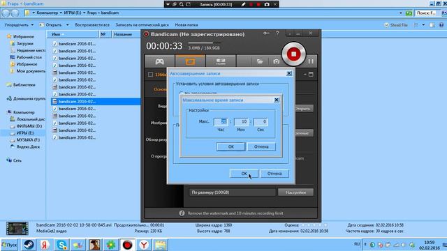 как снимать видео больше чем 10 минут в бандикам