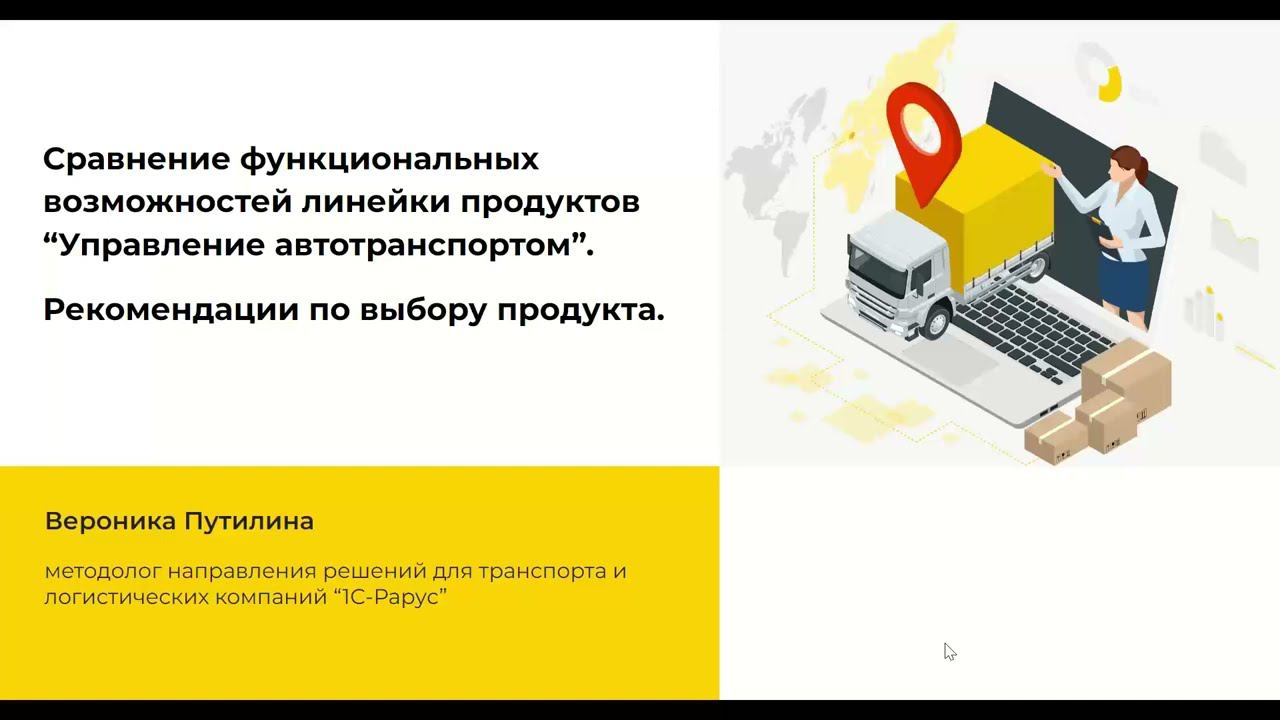 Запись вебинара от 22 ноября 2022 года по решениям линейки «Управление автотранспортом» - Сравнение функциональных возможностей линейки продуктов “Управление автотранспортом”. Рекомендации по выбору продукт. Программа вебинара: Как правильно выбрать подходящий программный продукт. Основные отличия продуктов линейки. Ключевые особенности продуктов «Модуль УАТ для 1С:ERP» и ТЛЭ КОРП. Мобильное приложение «Водитель УАТ». Апгрейды и переходы на старшие версии продуктов.