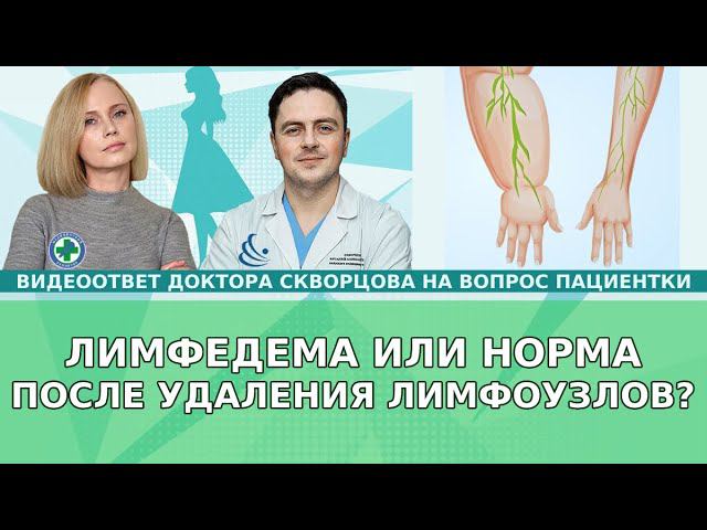 Быстрый ответ доктора Скворцова по ссылке https://www.skvorsov.ru/prioritet_doktor_skvortsov Подписывайтесь на наши проекты https://www.skvorsov.ru/forum_mzh ВОПРОС: Прошло 2 недели после лимфаденэктомии с удалением всех лимфоузлов. Были метастазы в лимфоузлах. Через 10 дней понемногу начала делать гимнастику. Через 2 недели вся рука отекла и боль при дотрагивании кожи от плеча до кисти. Это норма или начинается лимфостаз? Или ещё рано судить и так должно быть в послеоперационном периоде? И если рука ещё может быть отекшей, то какой период времени этот факт может не вгонять в панику? Нужно ли сейчас носить рукав? На вопрос отвечает Скворцов Виталий Александрович заведующий отделением №2 хирургического лечения опухолей молочной железы ГКОД Санкт-Петербурга, кмн, врач высшей квалификации, хирург-маммолог, онколог, реконструктивно-пластический хирург.