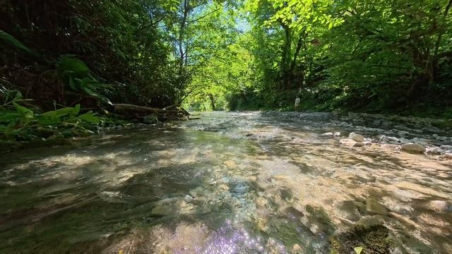 Пешком по реке Якорная Щель в лесу. В Сочи