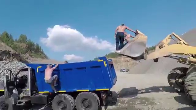 Мужики наполнили кузов самосвала водой и решили искупаться. #прикол #купание #круто #бассейн #самосвал
