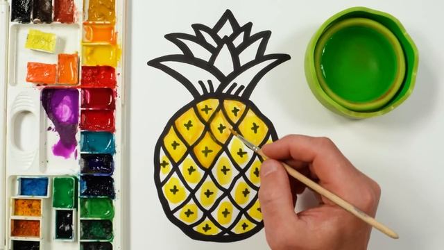 Рисование ананаса! раскрашивание фруктов для детей! Базовое руководство по рисованию ананасов