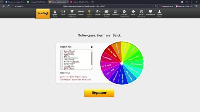 Колесо фортуны для розыгрышей онлайн — RandStuff — Яндекс Браузер 2025-12-13 18-55-34