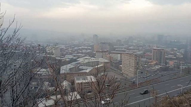 Вид на Ереван с высоты. Жаль туман и Арарат не видно.