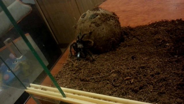 Самка паука птицееда рода Brachipelma Albopilosum (Брахипельма Альбопилозум) L9 пыталась скушать жука, который оказался слишком толстокожим.