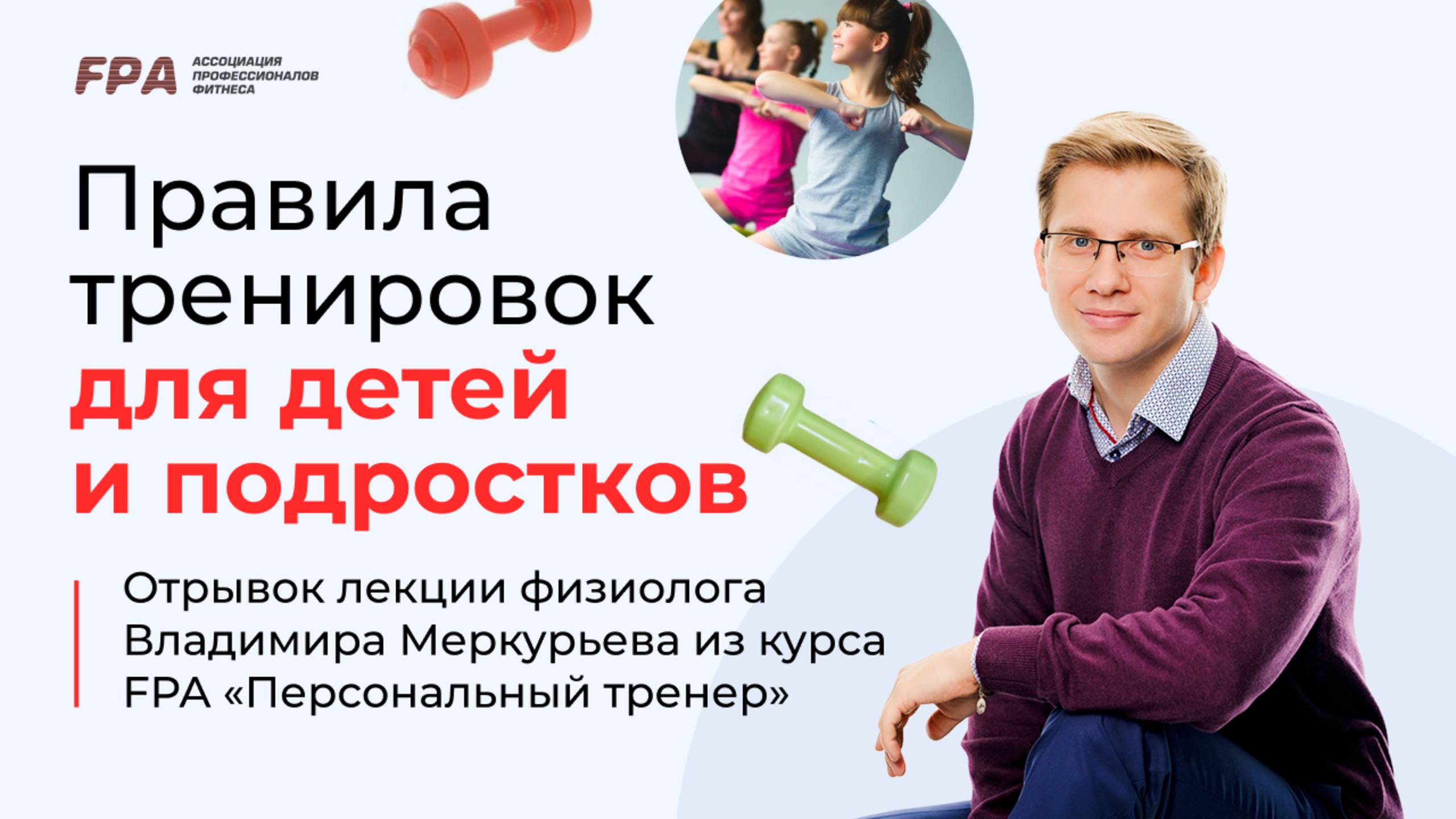Правила тренировки детей и подростков. Рассказывает физиолог, к.б.н., эксперт-преподаватель FPA Владимир Меркурьев. Публикуем отрывок лекции по физиологии на тренерских курсах Ассоциации Профессионалов Фитнеса. __________ Ассоциация Профессионалов Фитнеса (FPA) - лидер на российском рынке фитнес-образования. С 2000 года в FPA сертифицировано более 25 000 специалистов. Наши выпускники работают более чем в 1000 клубах Москвы, России и стран зарубежья 👉 http://fitness-pro.ru/ __________ Дистанционные программы обучения: – Персональный фитнес-тренер: https://bit.ly/39A06Xr – Фитнес-нутрициолог: https://bit.ly/37oC14n — Инструктор групповых программ: https://bit.ly/3AUq3ip – Детский фитнес: https://bit.ly/34OjT4B __________ Очные программы обучения: – Персональный фитнес-тренер: https://bit.ly/2ONTH2K – Инструктор групповых программ: https://bit.ly/2uFh3Re __________ Мы в соцсетях: ВКонтакте: https://vk.com/fpafpa Telegram-канал: https://t.me/trenerskayaFPA Telegram-чат для тренеров: https://t.me/trenerskayaFPAchat Яндекс.Дзен: https://zen.yandex.ru/fitness_pro_ru