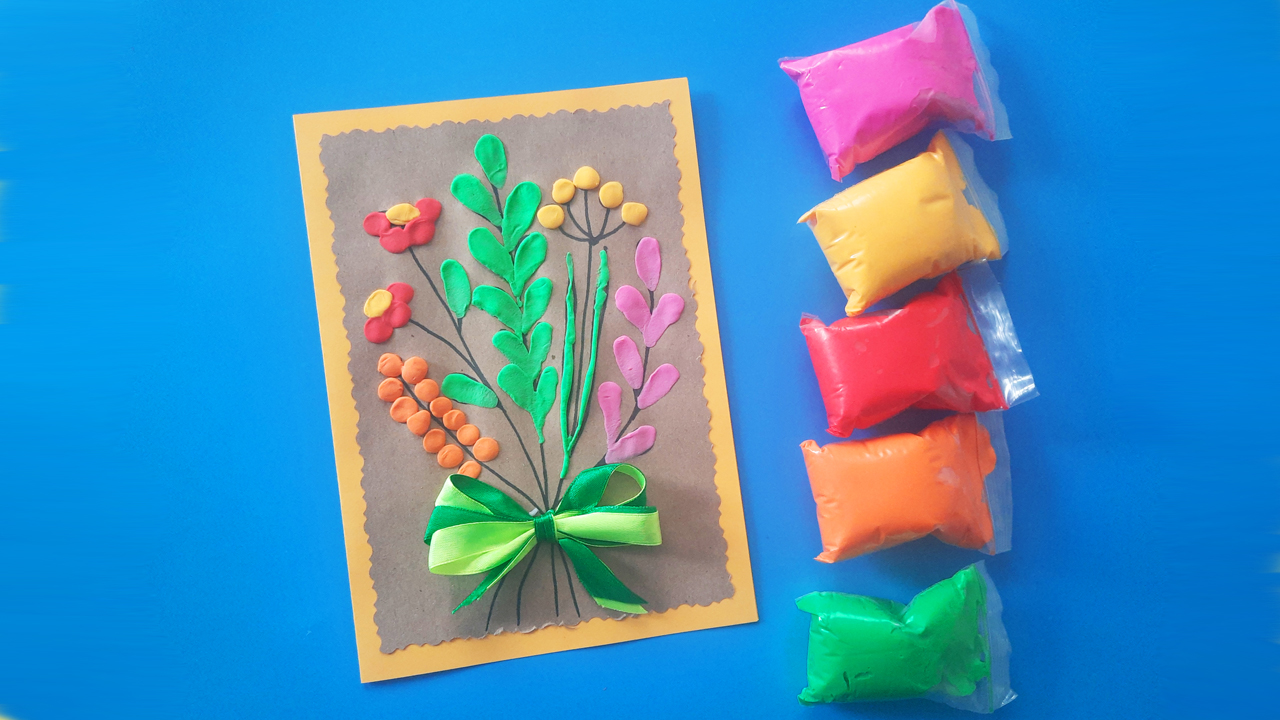 Красивая открытка с Днем Матери своими руками из бумаги и пластилина