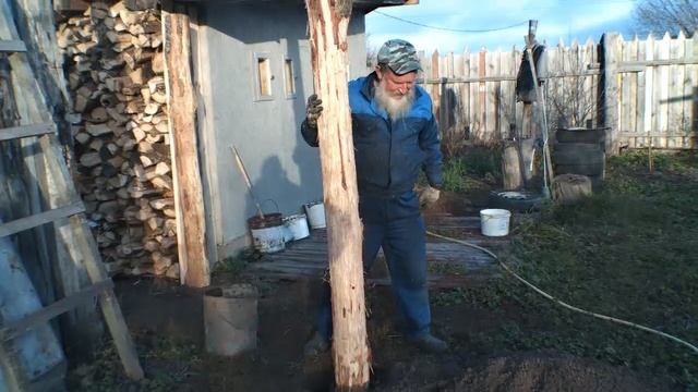 Деревенское строительство. Дровник на дубовых столбах. Так строили наши предки. Начало строительства